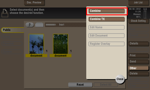 When printing multiple files at the same time, you can combine those files and handle them as a single job. This is called the Combine printing.