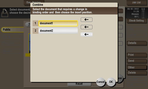 Change the order of printing files (Combine sequence) if necessary, then tap [OK].