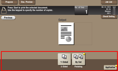 [Basic Setting] | You can set a number of copies, 2-sided Print, and Finishing if necessary. |