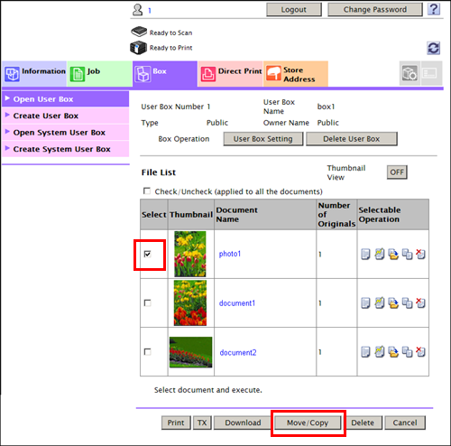 Select the check box of file you wish to move or copy, and click [Move/Copy].