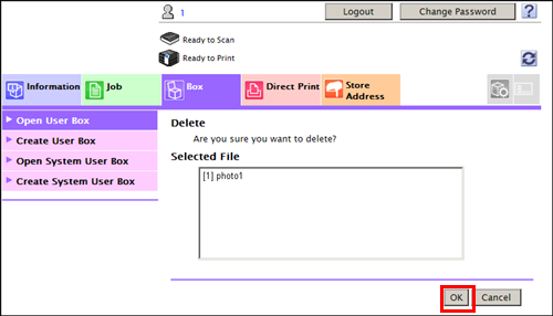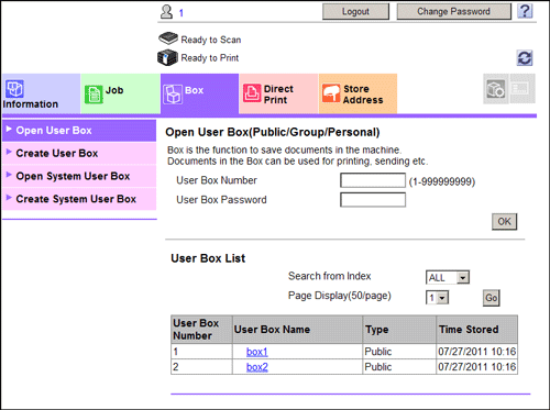 You can also open a desired User Box by entering its number directly in the [User Box Number] column.