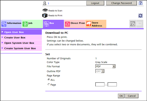 Using Web Connection allows you to download files in the Public User Box to a computer. For details, refer to Here.