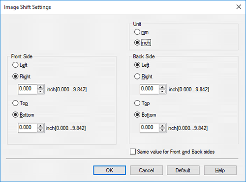 • When printing images on both sides, selecting the [Same value for Front and Back sides] check box applies the same settings to both sides.