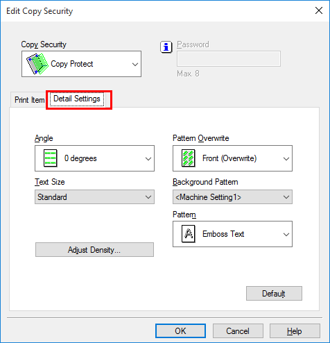[Adjust Density...] | Adjust the density of the copy security pattern. |