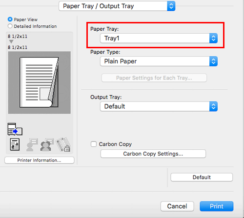 In [Paper Tray:] in [Paper Tray / Output Tray], select the paper tray for printing the body.