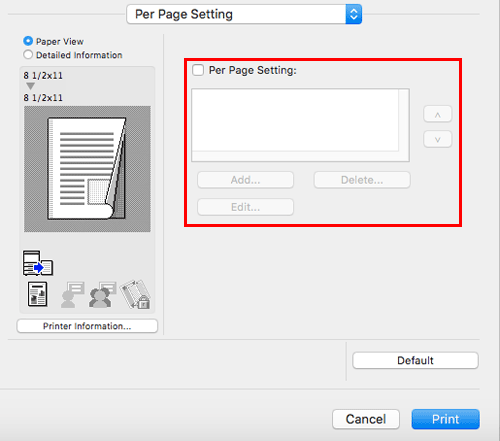 If nothing is registered in the list, selecting the [Per Page Setting:] check box automatically displays the setting window.