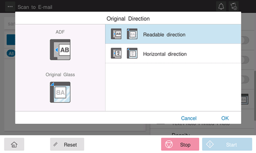 When scanning a 2-sided original, specify the original loading direction so that the vertical direction of the scanned original is set correctly.