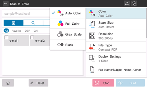 Automatically determines [Full Color] or [Gray Scale] to fit the original color when scanning the original.