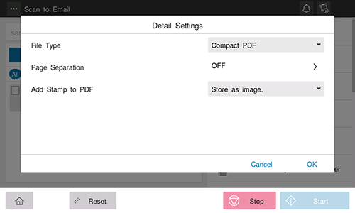 • [E-mail Attach Method]: When [Page Separation] is set to ON, select the attachment method.