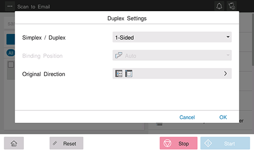 When scanning both sides of the original, select the original binding position to prevent the binding positions from being reversed between the front and rear faces.