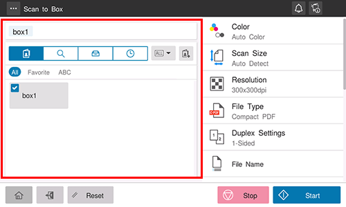 Using the Stop key enables you to stop scanning the original. A list of the currently stopped jobs is displayed. To stop transmission, select the target job from the list, and delete it.