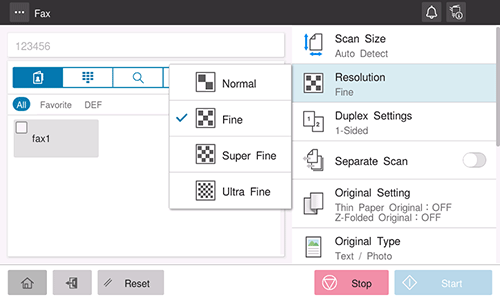 Select this option to scan originals that do not require a fine level of image quality, or when you want to send a large number of originals quickly.