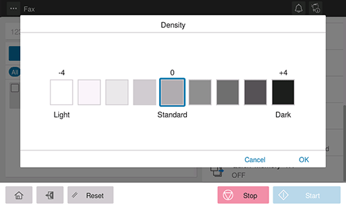 Adjust the density of the background color to prevent bleeding of the back of the paper when printing a 2-sided original that is so thin that the contents of the back side would be scanned. Selecting [Auto] automatically determines the density of the background color, and scans an original at the optimum background density level.