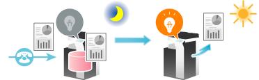While this machine is inactive, for example, during breaks or night hours on working days, press the Power key to set the Sub Power Switch OFF mode, reducing the power consumption. It is impossible to print faxes received in Sub Power OFF mode. To print them, press the Power key to release the Sub Power OFF mode.