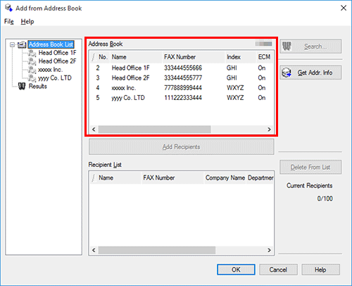 Select the recipient from the [Address Book] list, then click [Add Recipients].