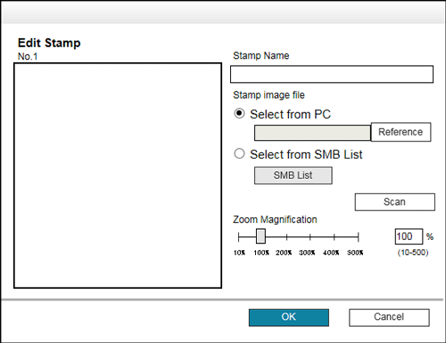 You can register or edit stamp data using Data Managing Utility. Up to eight units of stamp data can be managed. You cannot edit or delete stamp data that was registered on this machine when it was shipped.