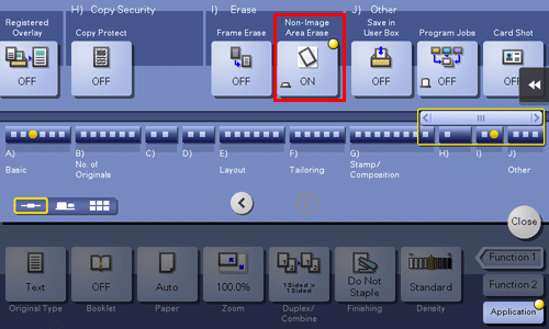 Tap [Application], select [Non-Image Area Erase], then select [ON].