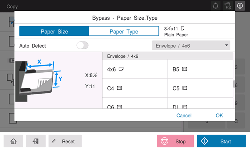 Various sizes of envelopes are available. Specify the correct paper size for the envelopes you have loaded. When the envelope size is specified, the paper type is automatically set to [Envelope].