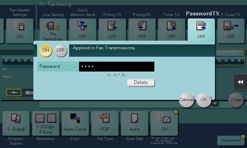 A fax is sent with a password to a device for which fax destinations are restricted by passwords (Closed Network RX enabled).