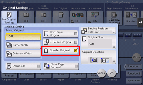 Scan a catalog with the staples removed as a 2-sided original, make a 2-sided copy, and staple the center of the paper in the same manner as the original catalog.