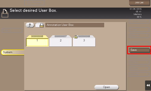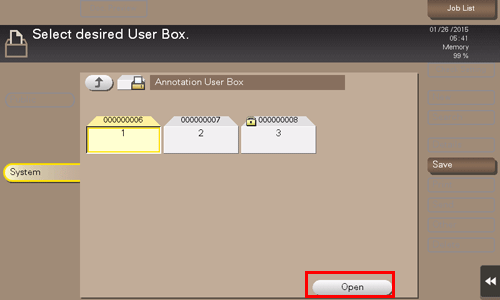 Select [Utility] - [Administrator] - [Box] - [System User Box List].