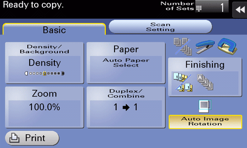 [Copy] | Tap this button to display the main screen in the copy mode. For details, refer to Here. |