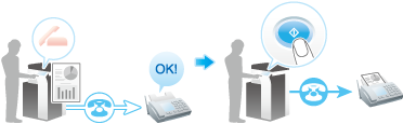 The Check Dest. & Send function checks the fax number specified for the fax transmission against the destination fax number (CSI) and sends the fax only when they match.