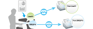 Specifying multiple destinations carries out computer sending and fax transmission simultaneously.