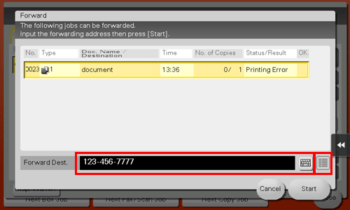 Select a job to be forwarded, specify the forwarding destination and then tap [OK].