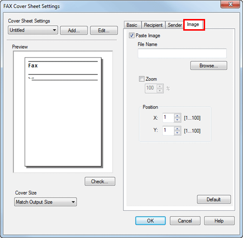 • When you click [Add...], the cover sheet image is saved and you can recall it later by selecting [Cover Sheet Settings].