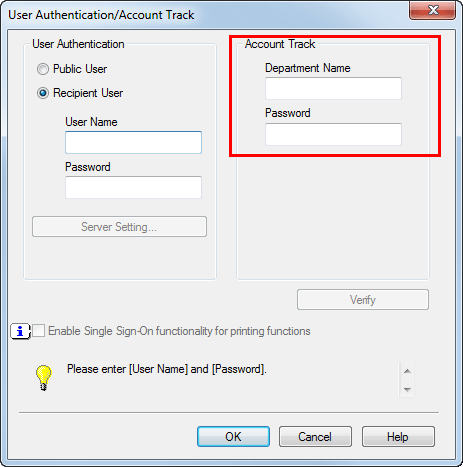 • If the PC can communicate with this machine, you can click [Verify] to check the entered authentication information. Also, you can check the authentication information for errors before printing it.