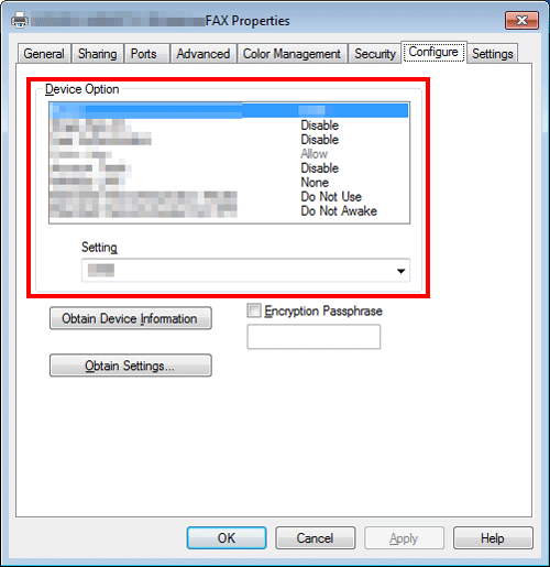 2. Open the [Configure] tab, and check the [Device Option] to ensure that the user authentication or account track has been set correctly according to the current operating environment.
