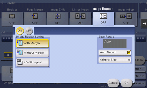[ON]/[OFF] | Select [ON] to specify Image Repeat. |