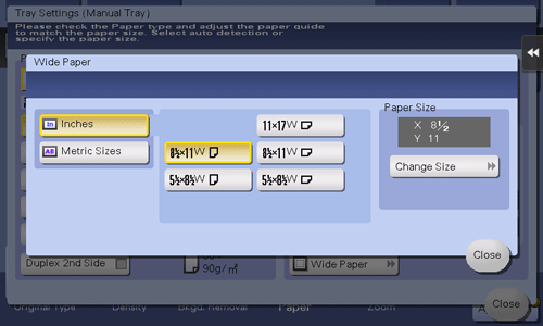 [Inches] | When loading wide paper in inch size into the Bypass Tray, select the paper size. |