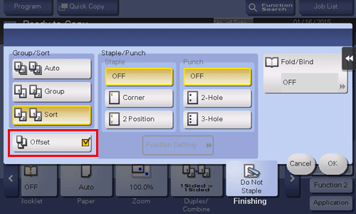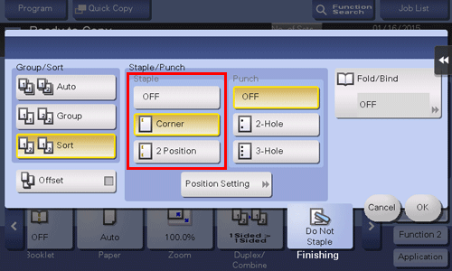 • To use the Center Staple function, the optional Finisher FS-534 and Saddle Stitcher SD-511 are required.