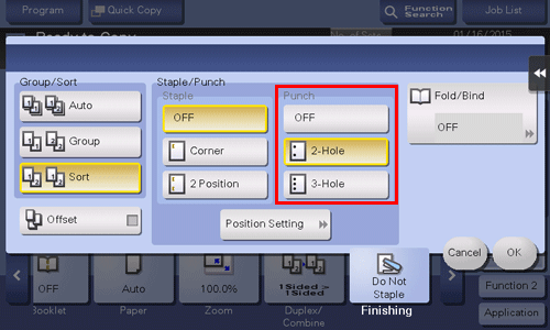 Select binding positions when punching sheets.