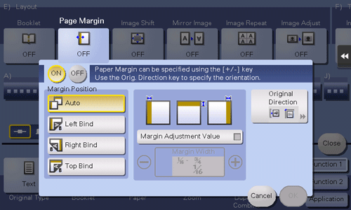 Select [ON] to set a page margin.