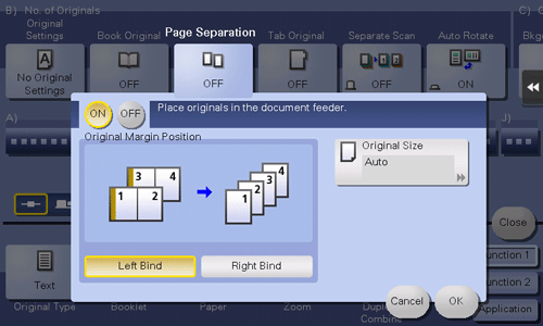 [ON]/[OFF] | Select [ON] to specify Book Separation. |