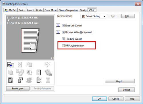 To perform MFP authentication when external server authentication is used together, select the [MFP Authentication] check box in the [Other] tab.