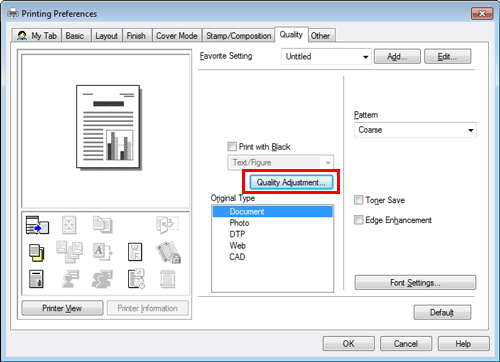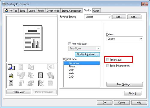 When you print a large number of copies, use of the Proof Print function will prevent a large number of misprints being created, thereby reducing the amount of waste paper generated. For details, refer to Here.