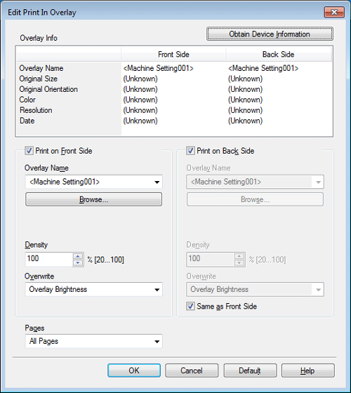 When printing images on both sides, selecting the [Same value for Front and Back sides] check box applies the same settings to both sides.