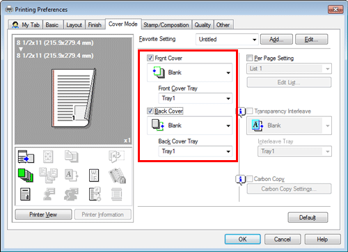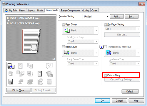 In the [Cover Mode] tab, select the [Carbon Copy] check box.