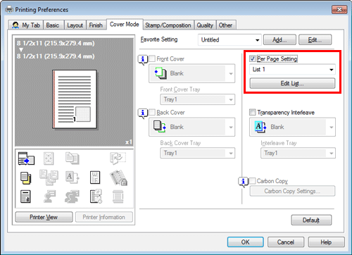 In the [Cover Mode] tab, select the [Per Page Setting] check box, then click [Edit List...].