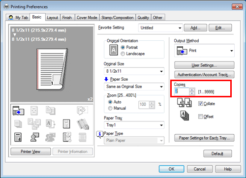 In [Copies] in the [Basic] tab, specify the number of copies you want to print.