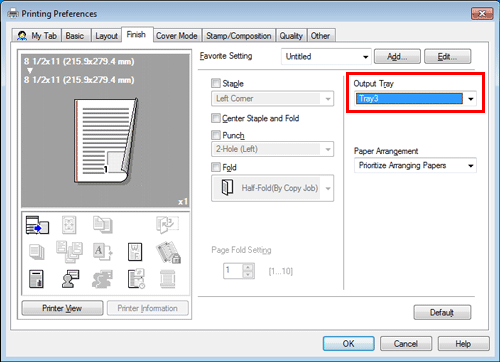 For example, by using the print command once, you can print a submission document on high-quality color paper loaded in Tray1 and print your copy on recycled paper loaded in Tray2.