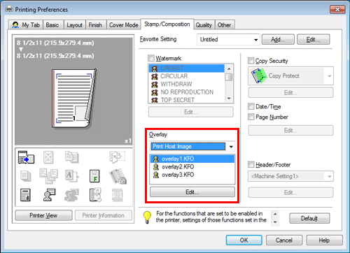 On the [Stamp/Composition] tab, select the [Copy Security] check box, and then select [Copy Protect].