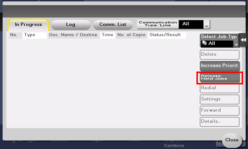 While [Active] is displayed, tap [Release Held Jobs].