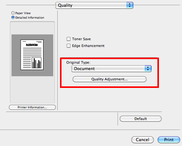In [Original Type:] in [Quality], select the optimum original type mode for the original.