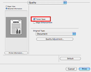 Selecting the [Toner Save] check box in [Quality] adjusts the printing density in order to save the amount of toner consumed.