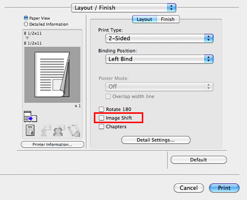 In [Layout / Finish], select the [Image Shift] check box.
